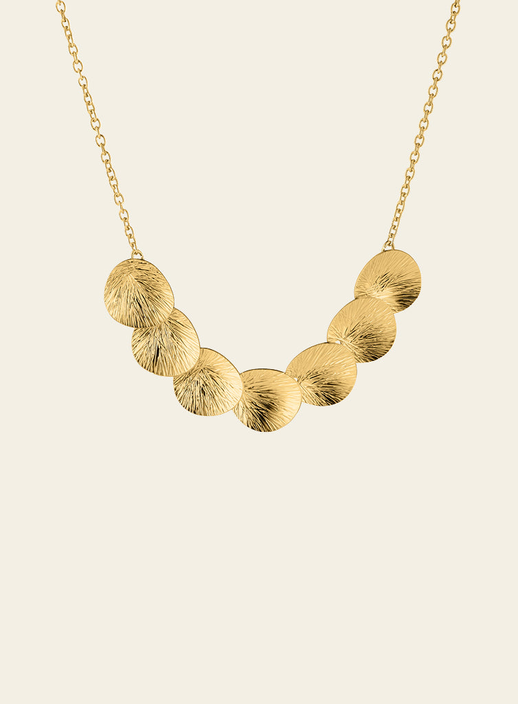Suunnittelija Heikki Hartikainen Pintakäsittely Keltakullattu Materiaali Keltakullattu hopea Koko 14x91mm Ketjun pituus 45/50cm -