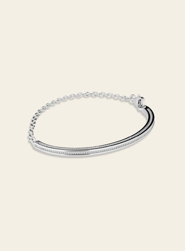 Aina-rannekoru ilmentää hiljaisen luksuksen trendiä puhtaimmillaan. Rannekoru yhdistää rannerenkaan ja ranneketjun hyvät puolet. Koru on todella helppo kiinnittää ja se pysyy varmasti paikallaan; koruosa edessä ja ketjukiinnitys ranteen sisäpuolella. Rannekorun leveys on 3mm ja sitä on saatavilla kolmessa eri koossa, 16,5cm, 18 cm ja 19,5 cm. Saatavilla myös keltakullattuna.