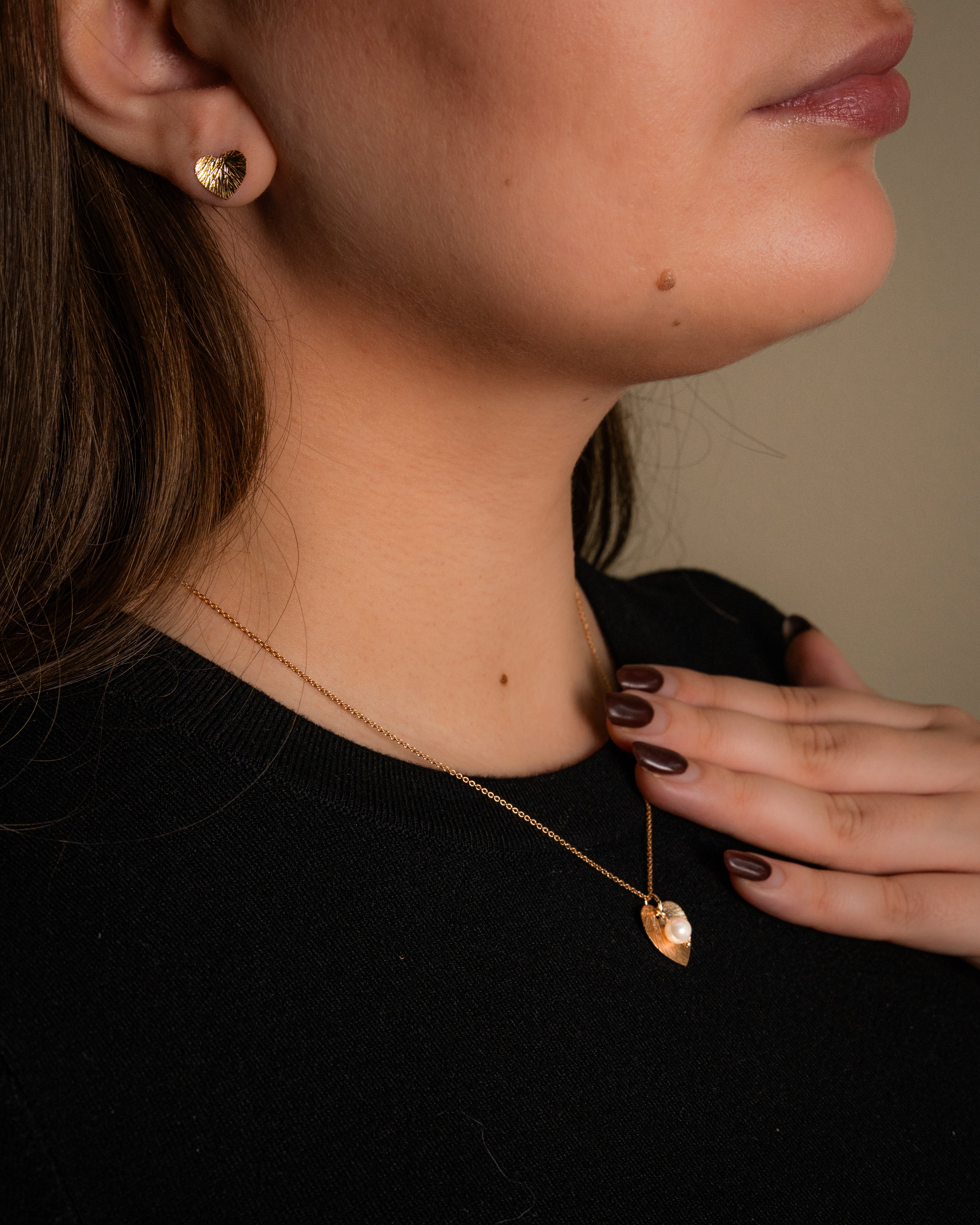 Kultaisen Lily riipuksen lehden pintaa muistuttava tekstuuri ja sydämenmuotoinen malli tekevät korusta herkän mutta vahvan. Sädehtivä Akoya-helmi viimeisteleee kokonaisuuden, joka on yhtä aikaa klassinen ja trendikäs.