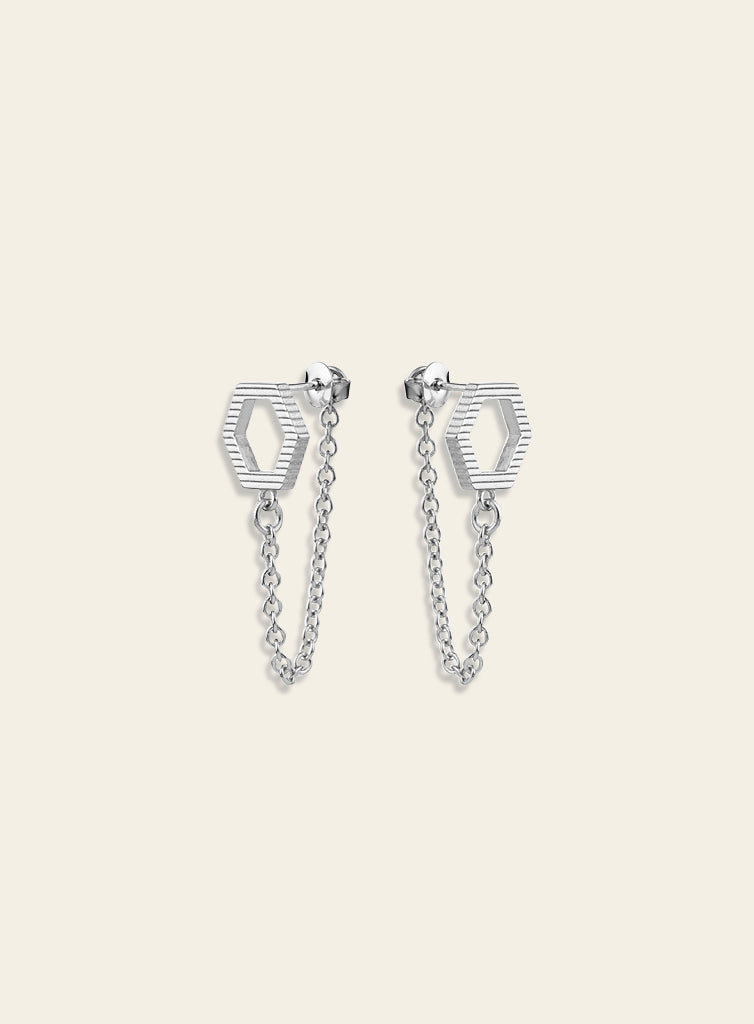 The honeycomb-inspired shape and lightweight chain of the Bee Mine earrings add movement to your outfit. The chain ensures that the stud stays with you wherever you go.