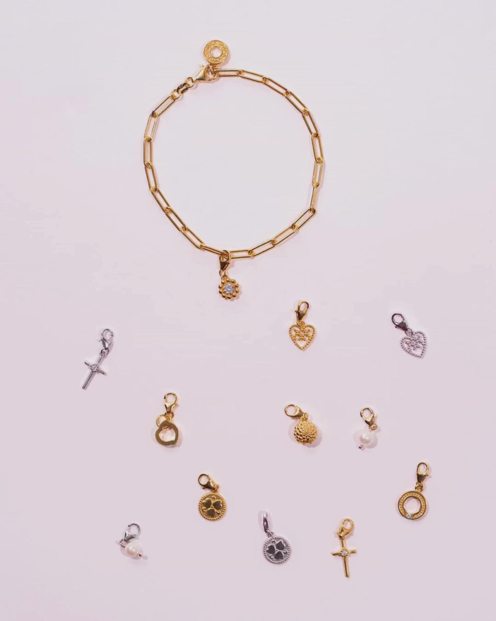 Aina charmin minimalistinen muoto on viimeistelty pienillä yksityiskohdilla – helmeilevällä reunalla ja kirkkaalla kivellä