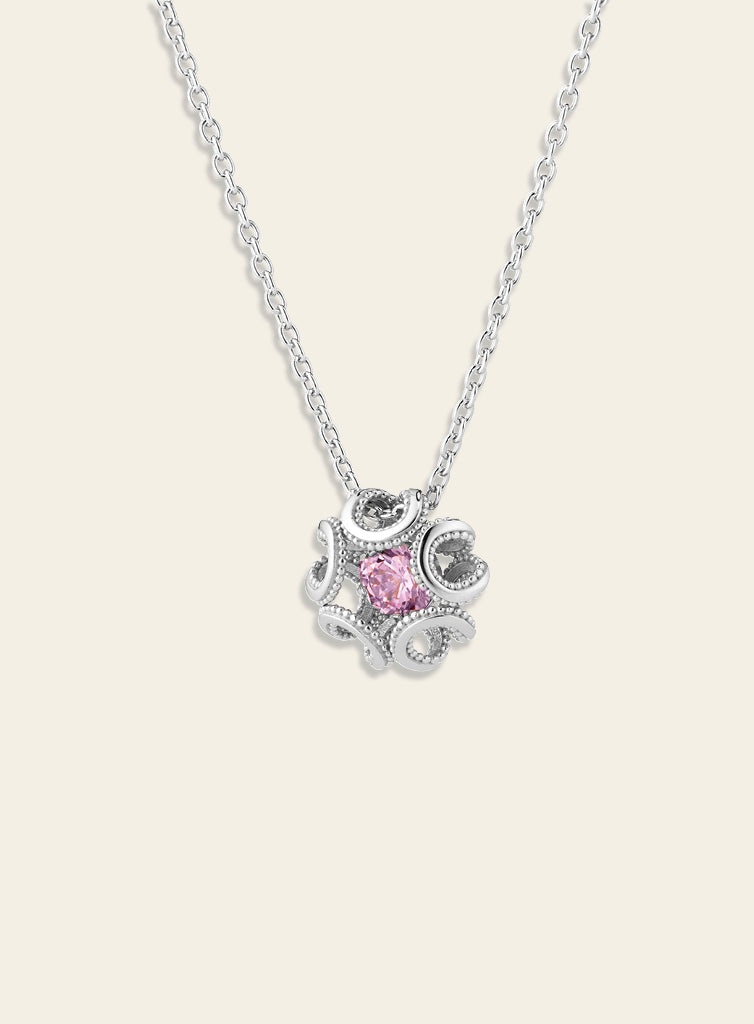Alma yhdistää viktoriaanisen koristeellisuuden ja modernin muotoilun pitsimäisillä yksityiskohdilla. Riipuksen keskelle asetettu vaaleanpunainen kivi korostaa korun kerroksellisuutta. Alma on moderni perintökoru – näyttävä mutta ajaton valinta sekä juhlaan että arkeen. Saatavilla myös keltakullattuna. Korun koko on 15x14mm ja ketjun pituus säädettävissä 45/50cm.