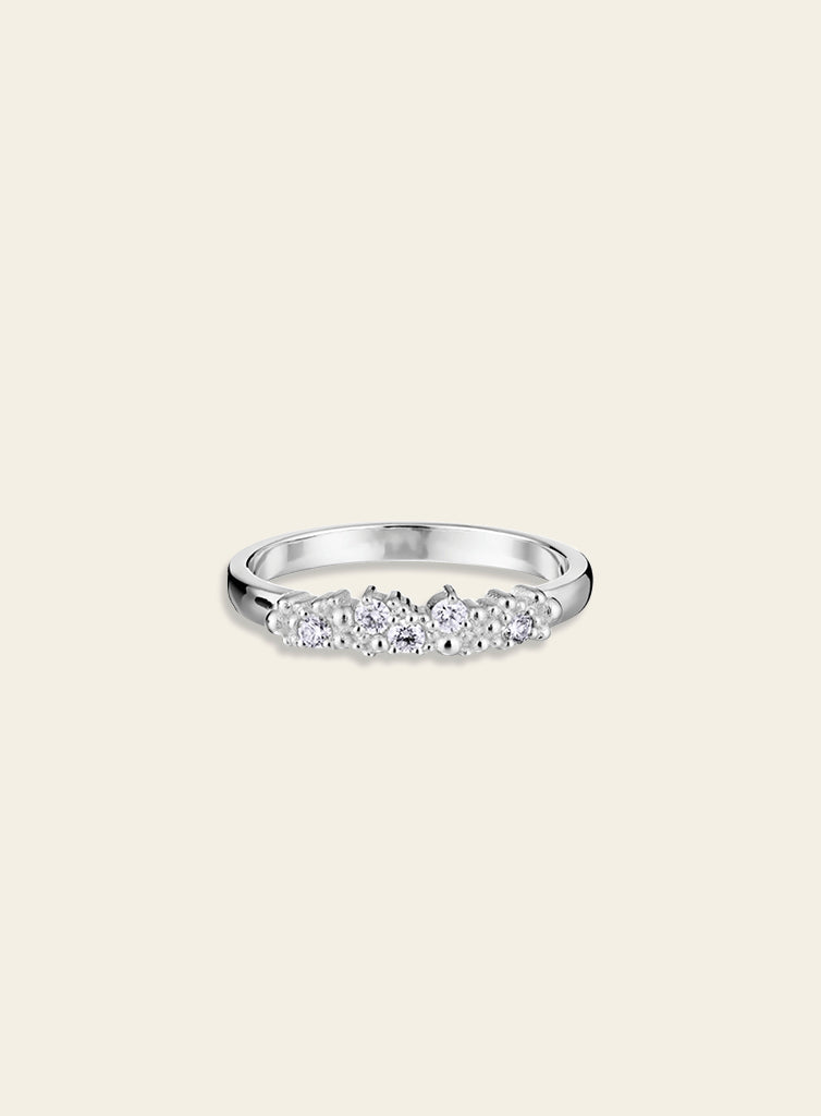 Sormuksen leveys on 2,4mm ja sitä on saatavilla koosta 15 kokoon 21 saakka. Sormuksessa on 5x0,03ct timanttia.